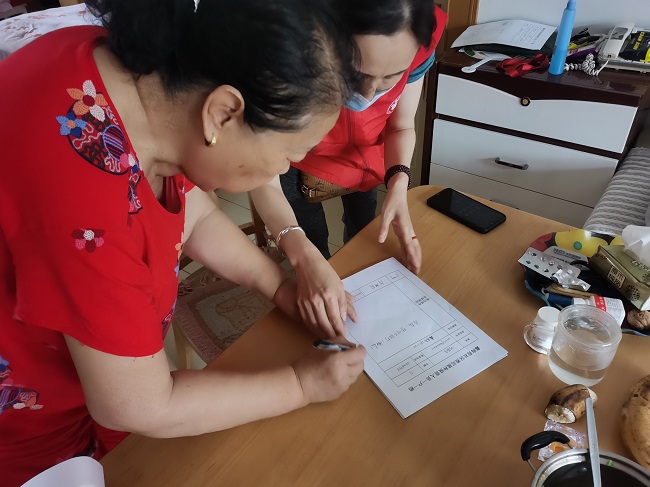 6月26日,組織黨員志愿者到鑫海苑社區(qū)開展入戶宣傳接打疫苗活動(dòng)。